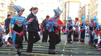 ▲外教参与民族传统体育运动。
