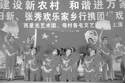 ▲鲜艳的服装欢快的舞步,表现出新农村欣欣向荣积极向上的精神风貌。