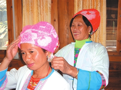 ▲上身多穿白色衣裳的龙脊壮家妇女。