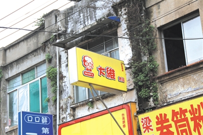 ▲古老的墙体长着杂草,与时尚的饮品招牌形成鲜明的对比。