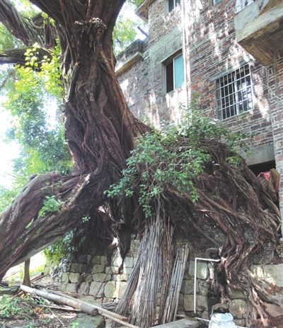 ▲不知是藤生长在先,还是建墙在先?