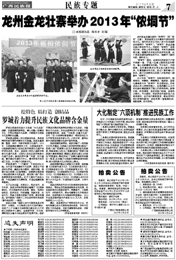 龙州金龙壮寨举办2013年“侬垌节”