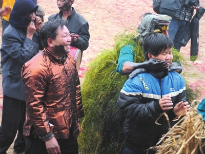 ▲“芒蒿”们追逐着人群,把黑色的锅灰涂抹在人们的脸上脖子上。没人对此表示不满,因为被涂之人则预示今年会消灾脱难,百病不生。