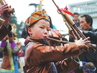 ▲芦笙是苗家的圣物,无论男女老少都爱吹芦笙。