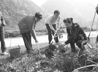 为贯彻落实自治区绿化委员会《关于开展2013年区直和中直驻桂单位“大种树、种好树、年年种、人人种”主题活动的通知》要求,3月8日,自治区民语委副主任杨启标带领该委机关干部职工一行18人,到定点扶贫村——靖西县地州乡古文村开展种树活动。当天,该县民语办干部职工、地州乡干部职工、古文村群众等35 人也一起参加