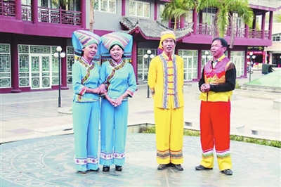壮族嘹歌是国家级非物质文化遗产,是歌圩文化的代表。连日来,平果县各地群众自发用嘹歌宣传党的十八大精神。图为歌手们正在用嘹歌宣传十八大精神。(邓克鹏 黄秋璐 摄影报道)