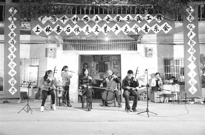 ▲石佩灵与孙子们共同表演器乐合奏《民歌联奏》。