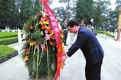 ▲王正伟代表调研组向百色起义革命先烈敬献花篮。