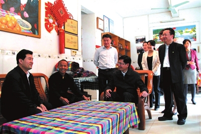 ◀王正伟深入百色市右江区平圩民族新村进行调研时,与村民亲切交谈。