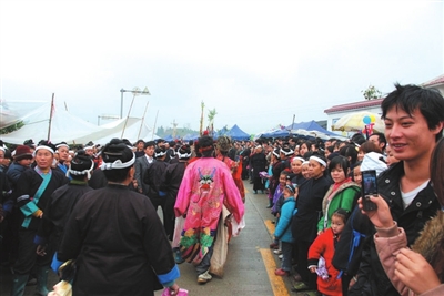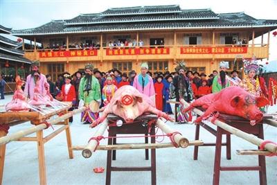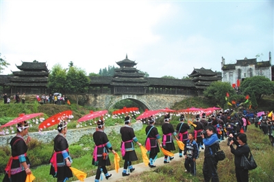 当天,侗族同胞杀猪宰羊,举行盛大的古装祭祀庙神活动。侗族寨老传统祭拜庙神仪式、抬神像游行,侗族盛装游行、跳多耶舞、芦笙踩堂、演侗戏、鸣炮等独具少数民族特色的活动吸引各地香客信徒、游客、摄影发烧友纷至沓来,“三王宫”里、田埂、风雨桥上挤满了拿着“长枪短炮”的摄影爱好者,三王宫内外人声鼎沸,好不热闹。