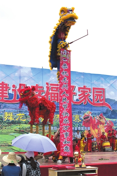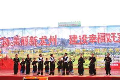 龙州县委、县政府十分重视民族民间文化活动,近年来每年在县城举行龙、狮、花凤大游行及舞龙舞狮大赛、天琴弹唱、民族歌舞表演等活动,让群众欢度龙元节。龙元节当天,具有1300年历史的古城龙州,龙、狮、花凤大游行经过的街道张灯结彩,人山人海,每个人的脸上都洋溢着节日喜悦的笑容。龙、狮、花凤游行经过时,锣鼓喧天,人声鼎沸,鞭炮阵阵,整个街道变成了欢乐的海洋。在舞龙舞狮大赛现场,观众围得里三层外三层,不少人是外地慕名前来观看的。比赛开始,各个参赛队使出浑身解数,各显独门绝技,他们舞的龙时而优美流畅,时而威猛雄风,时而摆出别致的造型,观众的欢笑声、喝彩声、鼓掌声此起彼伏。金龙镇九凤舞龙队是一支久经沙场、训练有素的队伍,由清一色妇女组成,她们英姿飒爽的身影一出现,立即引起观众的一阵尖叫声。她们舞的长龙如波浪一般连绵起伏,忽上忽下忽高忽低,龙在阳光的照耀下金光闪闪,显得气势不凡,龙昂首挺胸的样子仿佛就要迫不及待地腾飞……