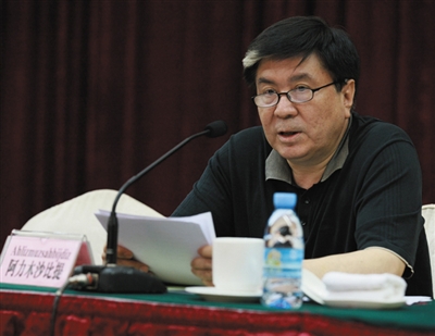 | ▲新疆代表在会上作题为《做好民族语文工作 服务和谐社会建设》的发言。 |