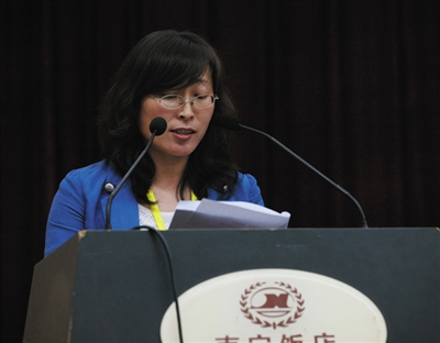 | ▲青海省代表在会上作题为《认真贯彻落实两个文件 努力推进青海民族语文工作》的发言。 |