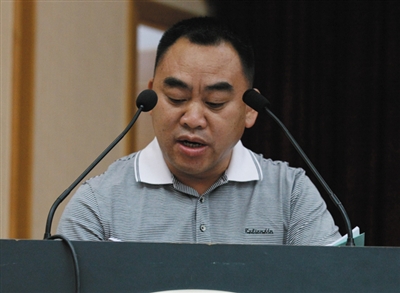 | ▲自治区民语委副主任杨启标在会上作题为《在探索和创新中谋求广西民族语文工作科学发展》的发言。 |