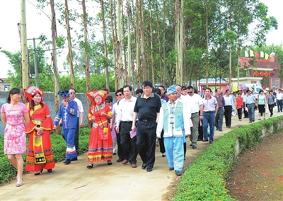 | ◀与会代表参观壮汉双语实验学校武鸣县庆乐小学。 |
