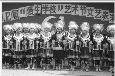 5月28日,三江侗族自治县古宜镇中心小学举办第12届“爱生学校”文化艺术节,千余名学生表演精彩的侗族歌舞、时装秀等节目激情唱响中国梦,喜迎“六一”儿童节。近年,该县全力打造幸福教育品牌,已创建爱生学校50所,是全国仅有的5个联合国儿基会教育与儿童发展合作项目县之一。图为侗族大歌表演。(杨 明 龚普康 摄)