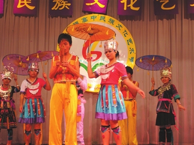 多年来,该校积极探索多元文化共存下少数民族教育发展的新路子,在保障国家与地方规定课程的前提下,开发具有民族特色的民族学、民族历史、民族音乐、民族体育等校本课程。