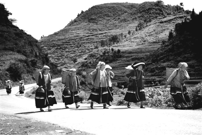 家乡是个汉、瑶、壮等多民族聚居的地方,每到赶场的日子,十里八村的各族同胞和远近客商如一道道川流从四面八方汇聚而来,集市上人山人海,很是热闹,民族特色更是鲜明。那些汉族的姑娘小伙子来赶场,既做买卖,也会意中人,就像当年少年时的我一样。那些黑衣壮的姑娘小伙子们就不同了,他们来赶场就像是赴一场隆重的盛会,特别是姑娘们更是引人注目,她们一路走来穿的是干活的旧衣裳,将到集市时就三五成群钻进树林或玉米地里,从头到脚换上带来的蓝淀染制的自织花格土布新衣装。只要她们一登场,集市上的惊羡目光都会一齐投向她们,美丽动人的壮家姑娘和她们那身崭新的民族服饰成了集市上一道靓丽的风景线,让人赞不绝口。这些壮家姑娘来赶场多数不做买卖,但她们必带一个装有更换衣服的包袱。姑娘小伙子们在集市里转上几圈后,吃上一两碗米粉,就成双结对去集市后面的草坡上林子里对起歌来,几排悠扬动听的壮家山歌唱下来,醉了自己,也醉了赶场的人。那些汉族和瑶族的姑娘小伙子们见此也纷纷加入其中,直把一个古老的瑶乡集市唱成了民族团结和谐的欢乐歌海。那些瑶族同胞赶场的习俗虽然与汉族相差无几,但却更有趣。上世纪六、七十年代的乡村生活比较贫困匮乏,那些女瑶胞赶场多是来卖农副产品,再买些针头线脑和油盐等生活用品,而男瑶胞来赶场则多是为了能痛快地喝上一顿酒,而且不醉不归。但赶场的男子汉们无论是汉族还是壮族和瑶族的来赶场都有一个共同的爱好,那就是只要经济条件许可,他们都希望吃上一顿狗肉汤锅。那时集市上的狗肉汤锅简单又乐趣,集市边上的露天场地上用三块石头撑起一口大铁锅,又在地上铺起芭蕉叶子当饭桌。来吃狗肉汤锅的人点上三五两狗肉,切好后放在芭蕉叶上,人就蹲在地上,一手端酒碗,一手拈狗肉,蘸着辣椒和狗肉香菜做成的盐碟吃个痛快。酒肉吃完接着喝上一碗狗肉稀饭,然后心满意足地抹抹嘴,丢下钱走人。那一连串的动作行云流水,好不惬意。每当想起当年人们赶场吃狗肉汤锅的情景,我都直吞口水,难以忘怀。