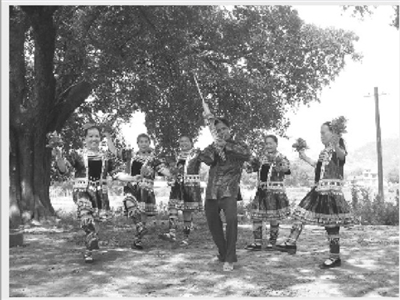 据了解,这个业余文艺队共有队员20人,准备了舞蹈《爱我中华》、《祖国你好》、《广场舞》,快板《唱唱农村新变化》,表演唱《创造争优谱新篇》,吹芦笙、杂技等10多个节目。图为队员们在排演吹芦笙。(韦祖祠 黄庚德 摄)