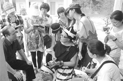 7月8日,我国知名的瑶学研究专家、广西民族大学玉时阶教授带着研究生从南宁到南丹县考察白裤瑶服饰文化。