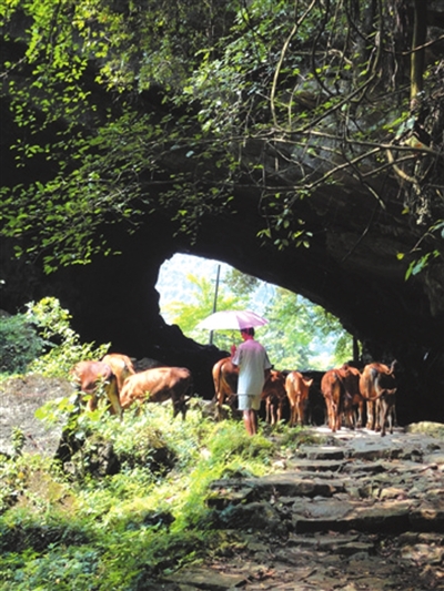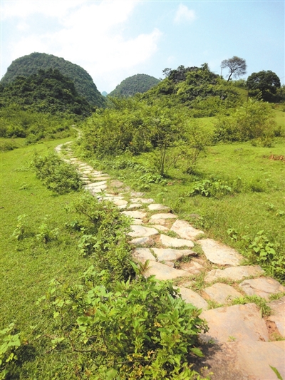 新中国成立,桂林至百寿经三皇到鹿寨的盘山公路,距穿岩村西仅数百米修通使用,从此隋代开凿的古驿道,只留有晚归牛群在夕阳下的蹒跚步履。