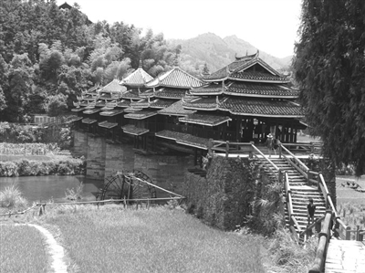 桥,按照字典的解释,就是架在河沟、山谷上连接两岸以便人们通行的建筑物。我闲时喜欢旅游,因而也就有机会欣赏过国内不少桥梁,有气势雄伟横跨在大江大河上的大铁桥,也有隐蔽于乡间僻壤小溪流水间的小桥,既有木桥,有石桥,也有铁桥,还有木石混合结构的桥,更有独具特色的风雨桥。观赏过众多的桥梁,印象最深的当数广西三江的程阳风雨桥,因为这是一座独具典型侗族建筑风格的风雨桥。程阳桥是一座木石结构的风雨桥,又叫永济桥、盘龙桥,位于三江侗族自治县的林溪乡,横跨在林溪河上,是目前保存最完好、规模最大的风雨桥。