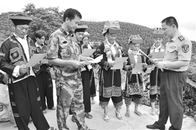 7月21日,宁明县人武部干部到爱店镇堪爱村丈鸡瑶族屯开展今年夏秋季征兵宣传活动。