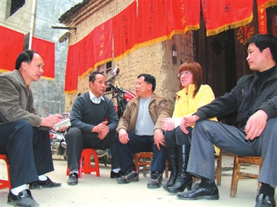 “我们村唱彩调,也唱桂剧,但这都是20年以前的事情了。”农历二月初二,是平乐县同安镇旺塘村委新屋村一年一度的民俗节,家家户户,高朋满座,人声鼎沸,比过年还要热闹。彩调团到村里拜年,为村民连续表演了两场彩调,73岁的李杜明,年轻时是名扬十村八寨的桂剧师傅,能编能导能演,还是本村桂剧团的领导,他亦对笔者说:“好多年都没有彩调剧团到村里来表演了!”