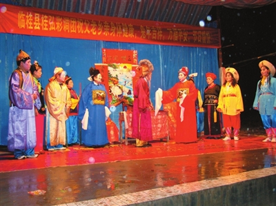 据介绍,如今,临桂县已经把村屯文艺队伍建设列入今年为民办实事的十件大事之一,并加大投入用于培训村屯彩调队,建舞台添服装道具及音响设备。