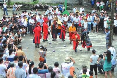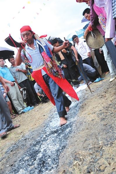 接下来就是“踩花灯”节目。不管是“上刀山、下火海”,还是“踩花灯”,全场观众都情不自禁地鼓掌欢呼,现场一片欢腾。