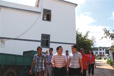 卢献匾率领第一组人员来到寺村镇中团村委喜力村,顶着烈日走村串户,走进农家与群众促膝谈心。在村民姚守成家中,当听到他介绍说自家种植葡萄、枇杷致富,家庭人均年收入过万元,但与村里家家户户建成漂亮的新楼房相比,他家新楼房还没有装修好时,卢献匾笑着对随行的象州县县委常委、统战部部长吴银燕说:“这是一家人均收入过万元的‘困难户’哟!”引得大伙一片欢笑声。这时,村长廖泽胜插话说:“过去村里穷,村民种水果都卖掉。如今富了,尽管枇杷卖6.5元1斤,村民也舍得吃了。”