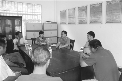 右图为杨启标与古文村干部、群众代表座谈的情景。