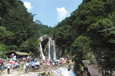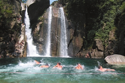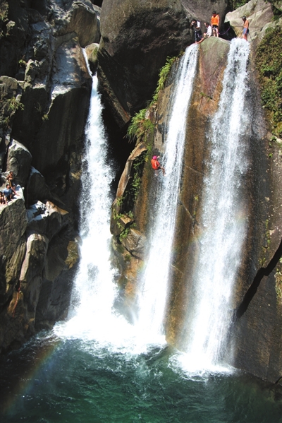 融水香粉乡中坪村毛坪屯是一个山清水秀、有独特自然风光的苗族村屯。该屯的村民勤劳朴实、热情好客,每年的农历六月初六这天,家家户户杀鸡宰鸭,准备丰盛饭菜,迎接亲戚朋友前来共度佳节。这里,有一个让亲朋好友十分向往的“三友瀑布”。走近瀑布,只见瀑顶两旁树木苍翠繁茂,巨石直立陡峭,弥漫着的薄雾夹杂着淡淡的水汽,一层层向上缭绕,三道白色的水帘,像三条仙女轻抛的白玉缎带,挥舞着天地间的灵气,幽幽从天际飘落下来,顿时,山绿了,地秀了。瀑布下面的水潭,清澈见底,凉爽无染。整个瀑布,给人以飘逸、壮观、美幻绝伦的感觉。