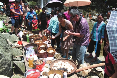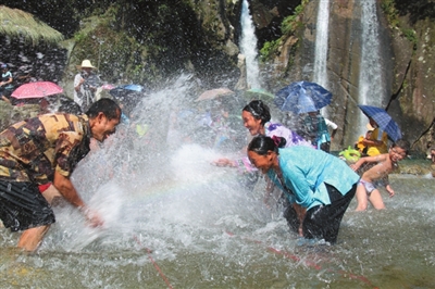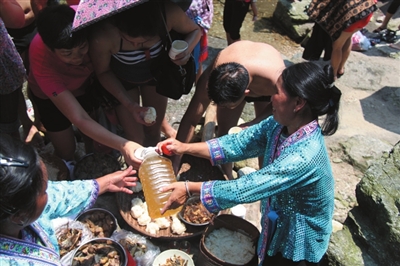 新禾节这一天,毛坪屯的村民不约而同地包起糯米饭、酸鱼、酸肉,装上重阳酒挑到三友瀑布下,与前来游玩的亲朋好友和游客们在独特的自然美景中一起共享美味的野餐。因为这里风景优美,村民热情好客,三友瀑布每年都吸引了数万游客前来观光旅游。