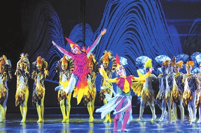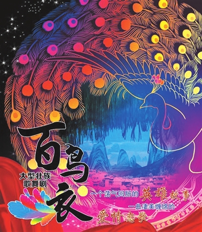 ▲图为大型壮族歌舞剧《百鸟衣》的海报和剧照。