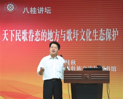 歌圩文化是壮族非物质文化众多项目中,最核心、最具标志性的文化遗产。南宁市及周边各县的壮族是土著民族,本区域盛行的壮族歌圩文化历史悠久,源远流长。2006年,由南宁市申报的非物质文化遗产“壮族歌圩”成功进入国家级非物质文化遗产代表作名录;从1999年开始打造的“南宁国际民歌节”已成功举办15届,南宁已成为名符其实的“天下民歌眷恋的地方”。南宁市作为壮族自治区首府,有关部门理应将建立南宁壮族歌圩文化生态保护区纳入非遗保护工作的重要议程。在壮族各地歌圩文化日渐濒危,歌手、歌手传承后继乏人的今天,建立南宁壮族歌圩文化生态保护区非常重要,意义重大。