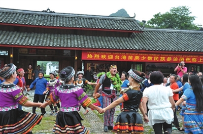 9月5日,台湾苗栗县少数民族代表团一行20多人,在旷野协会创会理事长云志照和北原山猫主唱吴廷宏的率领下,到上林县镇圩瑶族乡排岜庄与瑶胞人民一起开展少数民族交流活动。台湾少数民族代表与上林瑶胞人民欢聚一堂,大家手牵着手,一起唱着欢快的歌谣,跳起轻快的舞蹈,进一步增进两地少数民族之间的了解,拓宽交流视野,深化民族文化等各方面的交流与合作。