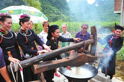 中午,各家各户派人出来呼朋唤友去吃饭了,各地来的客人不管认识不认识的,都受到热情邀请,都是贵客。吃饭的时候,文体活动照常进行,因为大家是陆陆续续去的,大多数人吃过了就赶回来观看演出和比赛了,所以操场上总是保持那么多人、那么热火朝天。来参加昆那节,你除了能饱览乡村如诗如画的田园风光,看到多情美丽的姑娘,还可感受到村民们的热情好客,享受土鸡土鸭土猪、“正宗”豆腐、自酿米酒、碳烤香肠、脆皮扣肉的鲜美味道,还有黄澄澄的玉米粥、生榨玉米粉条、乌黑发亮的黑糍粑……