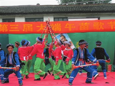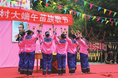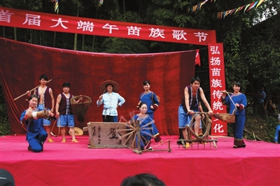 近年来,为充分挖掘、保护和传承苗族文化,龙胜各族自治县马堤乡芙蓉村等地的苗族人民每年的农历五月十五都要举行传统的苗族大端午歌节,活动的主要内容有苗族歌舞、山歌对唱、油茶竞赛、打泥脚表演等。节日当天,苗族群众除了表演丰富多彩的民族民间文艺节目外,还以歌会形式讴歌改革开放以来苗乡的巨大变化,讴歌党的民族政策和社会主义新农村建设的伟大成就。苗族大端午歌节的举办丰富了群众物质文化生活,弘扬了苗族传统文化,对进一步宣传党的民族政策、促进民族经济繁荣、增进民族团结和谐起到积极作用。