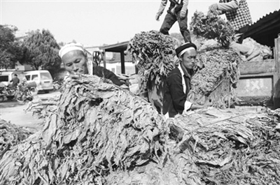 眼下正是烤烟销售的时节,南丹县里湖瑶族乡的白裤瑶烟农每天从各村各屯把烘烤好的烟叶运到乡烟叶收购站销售。