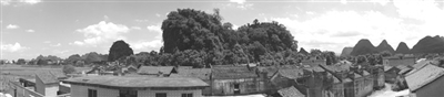 移步古建筑群侧面,抬头仰视,只见狮子山古木参天,郁郁葱葱,分布在山南的秦家古屋青砖灰瓦,墙头竖有无数马头,如万马奔腾直冲云霄,震撼人心;穿行其中,引入眼帘的是雕梁画栋,花格门窗。