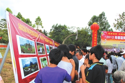 热闹非凡的向都霜降山歌节让精明的商家发现了难得的商机,众多商家把农产品 、手工业品等种类繁多的商品摆在大街上。霜降歌节期间,商品摊位数量是平时街日摊位的10倍以上,外地客人总喜欢挑上一两件具有当地特色的商品带回家,而本地人也趁这个时候选购外地人引进的新产品。在竹器行,一些竹器匠根据买主的喜好,现场编制竹器,既卖给了客人满意的商品又卖出了个好价钱;在小吃行,油糍、粉肠等美食让“嘴馋”的客人大饱口福;在农产品行,南瓜、三角麦等绿色食品受到城里人的青睐。熙熙攘攘的人群、琳琅满目的商品、此起彼伏的讨价还价声构成了一幅繁荣有序的集镇贸易图。
