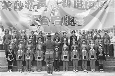 据悉,该县教育局于今年4月起组织全县中小学校开展校园合唱比赛活动,并于12月1日前,将各学校比赛过程影像资料刻录成DVD光盘集中评奖,选出合唱比赛活动开展得好的学校DVD光盘报市教育局参赛。图为小学生们在进行合唱比赛。(黄秀凤 莫洁岚)