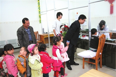 李国周是9个小孩当中个子比较高的一个,虽然只有7岁,但是却非常的懂事。由于父母常年在深圳打工,他一直和爷爷奶奶住在一起。“爸爸妈妈常年在外,平时爷爷、奶奶从来没有带我们去体检,这次叔叔、阿姨带我们到医院体检,我们很兴奋。”就像李国周一样,其他8个孩子也从都没有参加过体检,甚至有几个小孩从来没有到过县城。