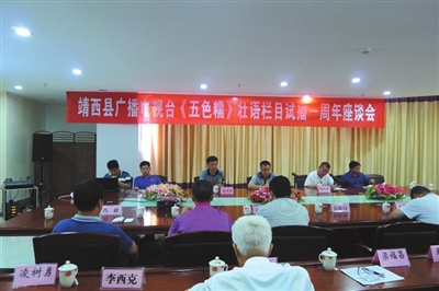 靖西县壮族人口占全县人口的99.4%,是全国典型的壮族人口聚居县。长期以来,靖西壮族同胞用地方语言交流,在生产生活实践中不断丰富其文化内涵,形成南疆边陲地区独特的语种。为保护和弘扬地方民族语言千年传统及灿烂文化,充分利用这一平台传递先进文化,实现党的路线、方针、政策宣传全面覆盖,让广大人民群众共同享受社会进步发展成果,努力推进壮语在靖西广播影视领域的运用,如今已成为靖西县党委政府和有关职能部门十分重视的一项工作。