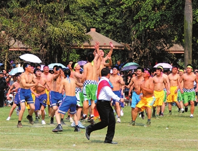 歌圩, 壮语叫"龙洞",也叫歌坡或坡会,是壮族群众以山歌为形式的社交聚会活动,也是青年男女最喜爱的活动之一。歌圩始于唐代,至今已有1000多年的历史。歌圩的内容多以山歌为主,其形式一般有男女个人对唱和男女群体对唱两种。山歌有见面歌、邀请歌、盘歌、新歌、爱慕歌、盟誓歌、送别歌等。壮族青年能歌善唱者众,出口成歌。优秀的歌手,其知识丰富,思维敏捷,对唱如流,歌声甜润而响亮,悦耳动听。对山歌有一定的规则,在野外对歌,可以唱缠缠绵绵,肝肠寸断的情歌,但必须首先问明对方姓名、婚否,首先要热情赞颂主家,然后才唱其他歌。歌圩一般在各种节日举行,各地的节日根据传统习惯相对固定,“龙洞”的时间不尽相同。如有的地方为三月三,有的为四月八,有的则为七月十八。歌圩期间,男女青年除对歌传情外,也可以抛绣球、碰蛋定情。当今的壮族歌圩已发生较大的变化,只有少数地区还盛行这种传统的壮族节庆习俗。对歌者须保持一定距离,以能听到歌声为宜。由于受外来文化影响,大部分壮族地区的歌圩有的已经失传,有的已经演变成壮族群众聚会的日子、歌圩无“歌”的现象日益突出,歌圩的内容被探亲访友、交流思想文化等所取代。
