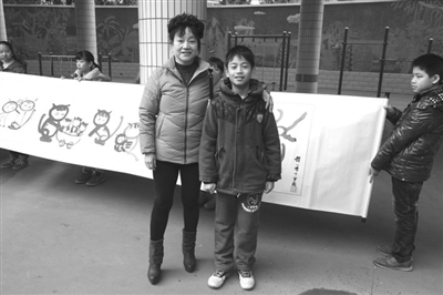 12月20日,是南宁市南湖小学建校50周年的日子,那天学校在操场搭建起舞台,学生们载歌载舞,以简朴的形式欢度节日。当天,学校还举办了“点亮教育”校园文化建设书画艺术成果展示活动。在一楼操场外以及二楼走廊边,挂满了小学们的字画。其中,一幅《百猫图》一展示即轰动全校。