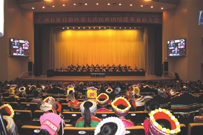 本报讯(记者 唐 龙 文/图) 2013年12月30日上午,广西壮族自治区第七次民族团结进步表彰大会在南宁市召开,200个模范集体和300名模范个人受到表彰。自治区党委书记、自治区人大常委会主任彭清华出席表彰大会并讲话。自治区主席陈武主持会议。自治区政协主席陈际瓦出席。