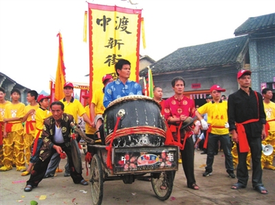 鹿寨县中渡镇早在三国东吴末帝孙皓甘露元年(公元265年)建立长安县治。中渡镇民俗文化深厚,每年的农历五月二十八日是中渡镇一年一度的城隍庙会,相传这天是中渡城隍的诞辰,该庙会兴起于明代成化初年(约公元1462年),流传至今。整个庙会历时3-10天,主要活动以蝴蝶、贝壳、旱船、抬阁、挺马、高跷、龙狮表演的城隍爷巡城等,期间有百家宴(古时称和饭)、抢花炮夺奖屏、唱桂戏,武术、杂耍表演等。随着时代的变迁,群众文化娱乐需求不断增加,现在的庙会活动除了保持原有的民俗活动外还增加有腰鼓、秧歌表演、山歌表演、放花灯、民间手工艺品展示、特色美食一条街等现代文化娱乐活动,使庙会活动更为丰富多彩。庙会期间,前来参加庙会的游客可以到城隍庙烧香拜祭,求福求财,求平安。