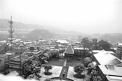 县城不大,作为南国雪花的归宿,却算得上是一块风水宝地了。侗家人早已了解雪的性格,原本繁华的街市此刻竟自觉地肃静起来,高矮不一的楼房在白茫茫的雪地上破地而起,如腊月里的冬笋提前孕育春天的雅兴。县城由东西两个区组成,四面环山,浔江从县城腹心穿过,两岸常年雾气缭绕,世界上最长的三江风雨桥跨越在江面上,洒脱的雪花不时飘落到清澈的河水里,银白色的倒影随着涌动起来,颇有白龙戏水般的诗情画意。此时的风雨桥,在雪花的柔情下没有了平时的霸气,厚厚的棉被子披在桥身上,远远望去一切都是那么温馨。江中常年露出一块萝卜洲,雪花早已把小洲化妆成了白色萝卜,一个丰润的小公主就这么在江面上静静沐浴,水雾缭绕的浔江从此多了一分姿色。
